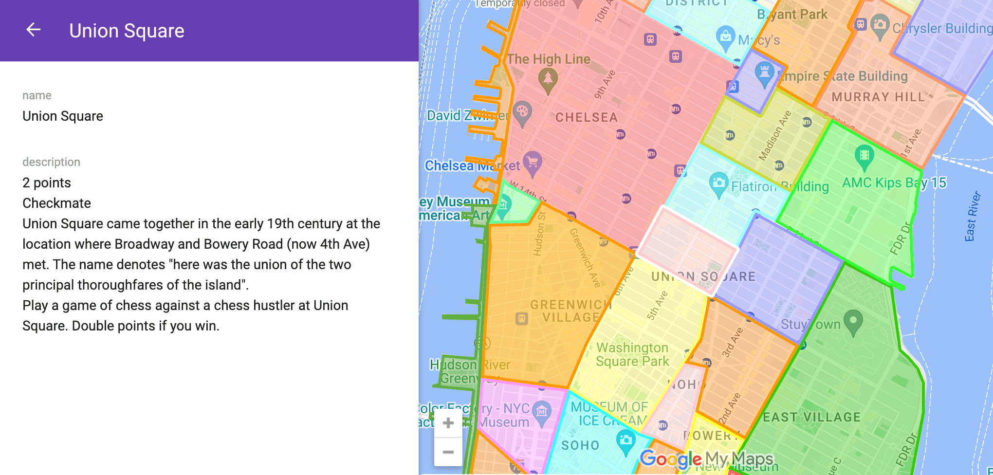 Claim neighborhoods by completing challenges at local landmarks.